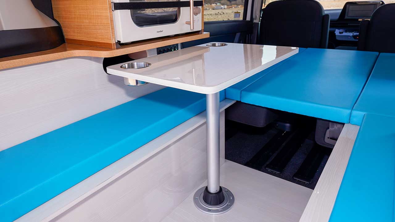 ワゴン車の様な質感の特別仕様車に。充実した装備を施したキャンピングカーです。エアコン、FF灯油ヒーターはもとより、リン酸鉄リチウムイオンバッテリーが標準装備です。