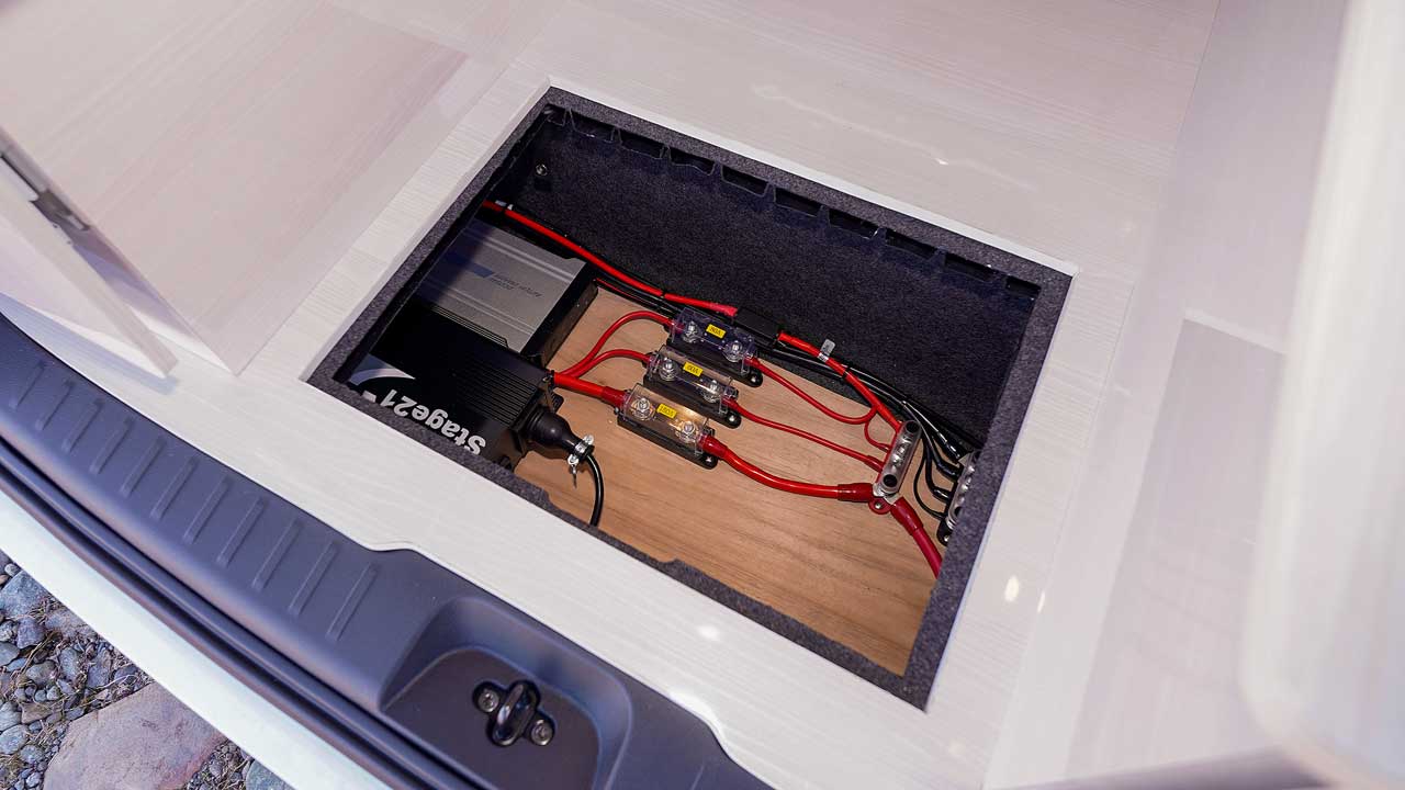 エンジン稼働時にオルタネーターが生成する電力を、走行充電器を利用してサブバッテリーへ充電します。移動中に充電して、エンジン停止後もサブバッテリーから供給される電力を使えます。