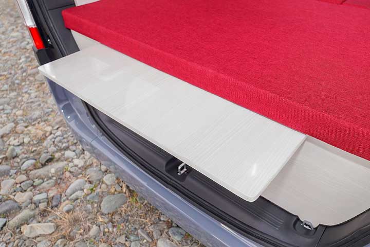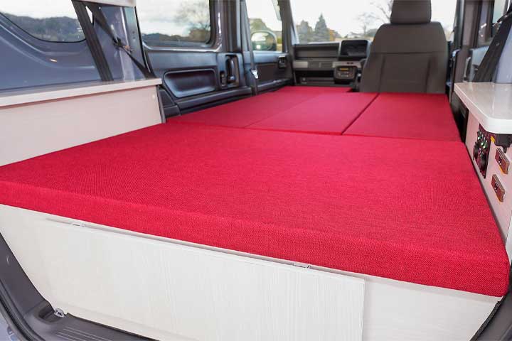 NV200の限られた荷室を有効活用して十分な就寝スペースを実現しました。