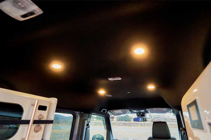 ワゴン車の様な質感の特別仕様車に。充実した装備を施したキャンピングカーです。エアコン、FF灯油ヒーターはもとより、リン酸鉄リチウムイオンバッテリーが標準装備です。